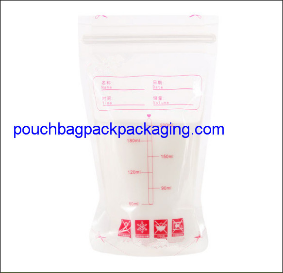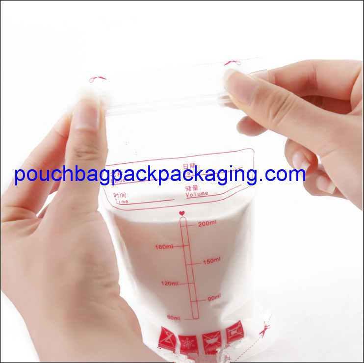 Sac d'emballage imprimé pour le stockage du lait maternel 200 ml, de qualité alimentaire avec fermeture à glissière |
