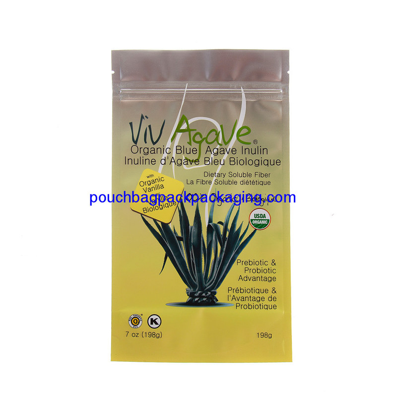 Caractéristique pour Sac en aluminium avec fermeture à glissière, sac avec fermeture à glissière pour poudre de protéines