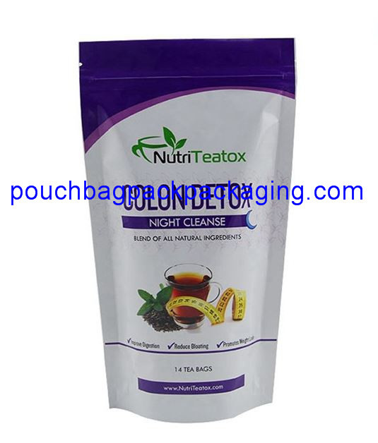 | Item: | Stand up tea pouch with printing, stand up bag pouch resealable | Material: | PET/VMPET/PE, PET/AL/PE or custom |