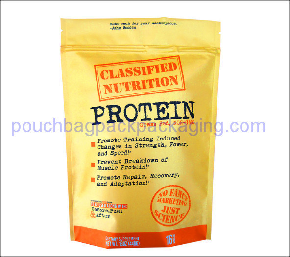 | Item: | Kraft packaging bag, paper stand up pouch, kraft doypack for protein | Material: | PET/kraft paper/PE, PET/VMPET/ kraft paper /PE, or custom |