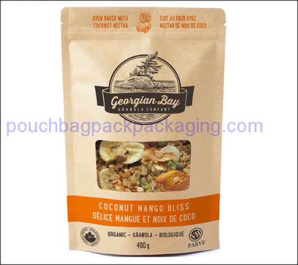 Caractéristique pourSac en papier kraft brun, sac debout avec fermeture à glissière ré-fermé pour la nourriture